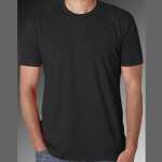 100% combed cotton jersey • 4.3-oz. • 32 singles for extreme softness • 1x1 baby rib-knit set-in collar • tear-away label • Sizes: S-2XL